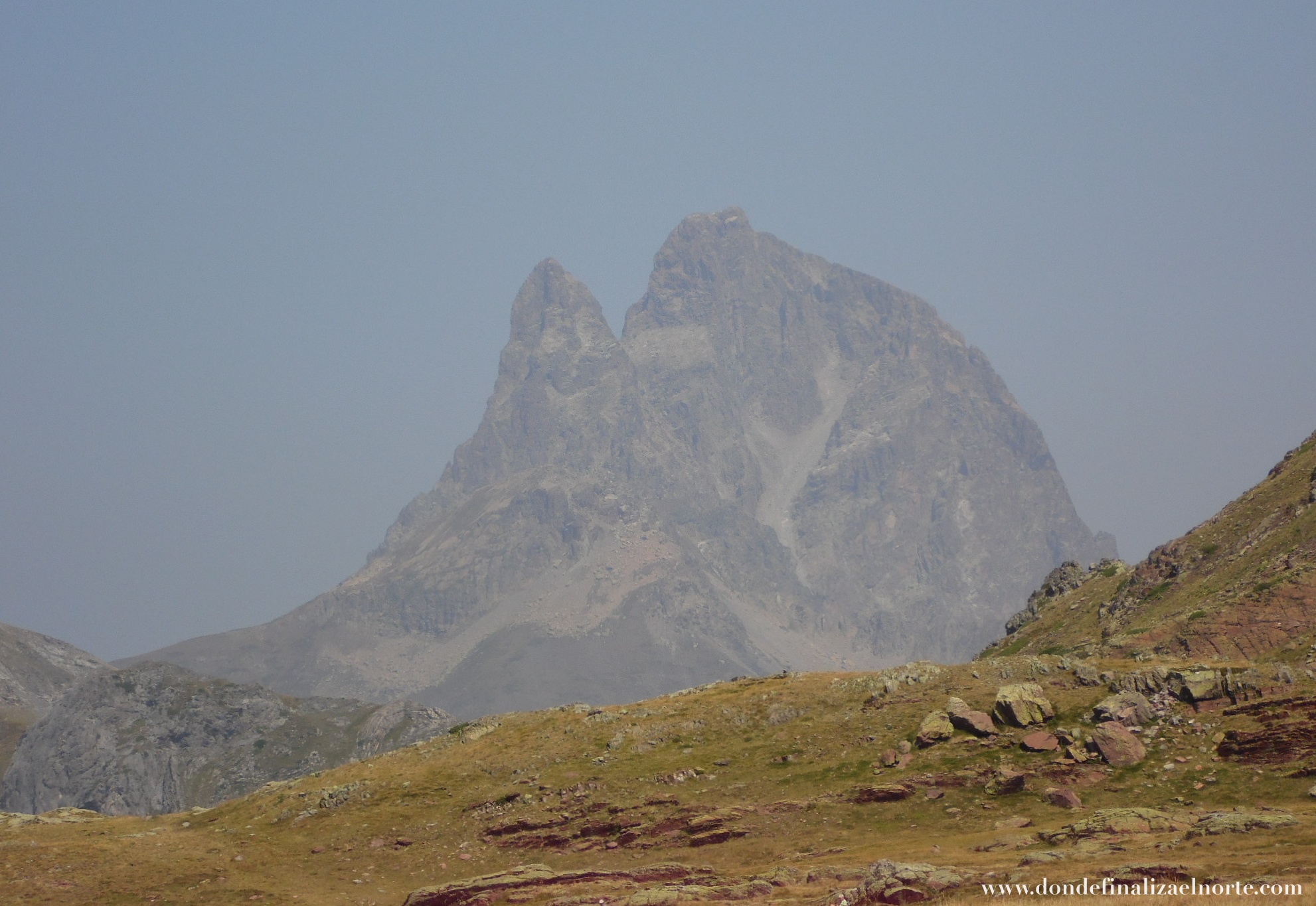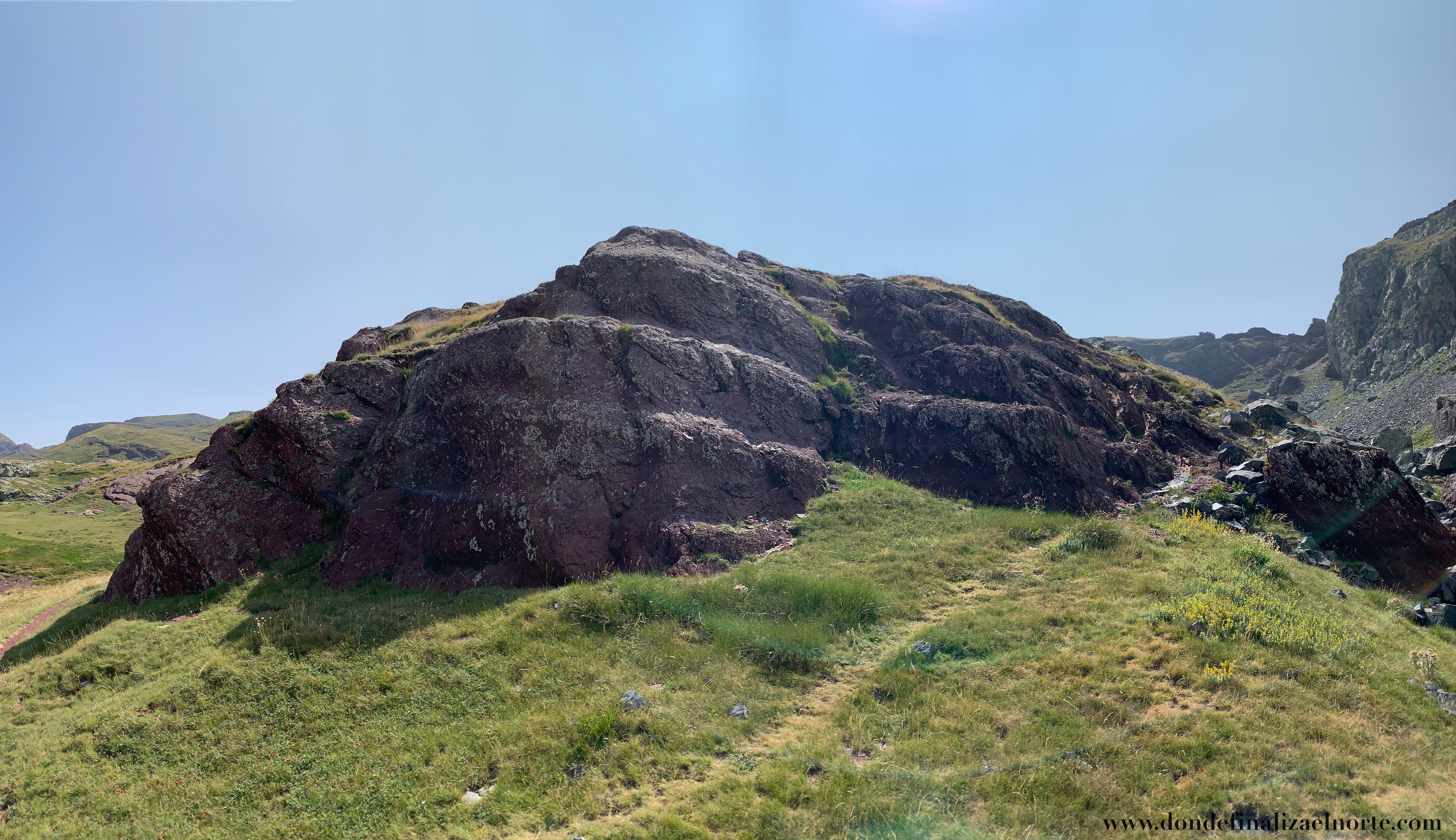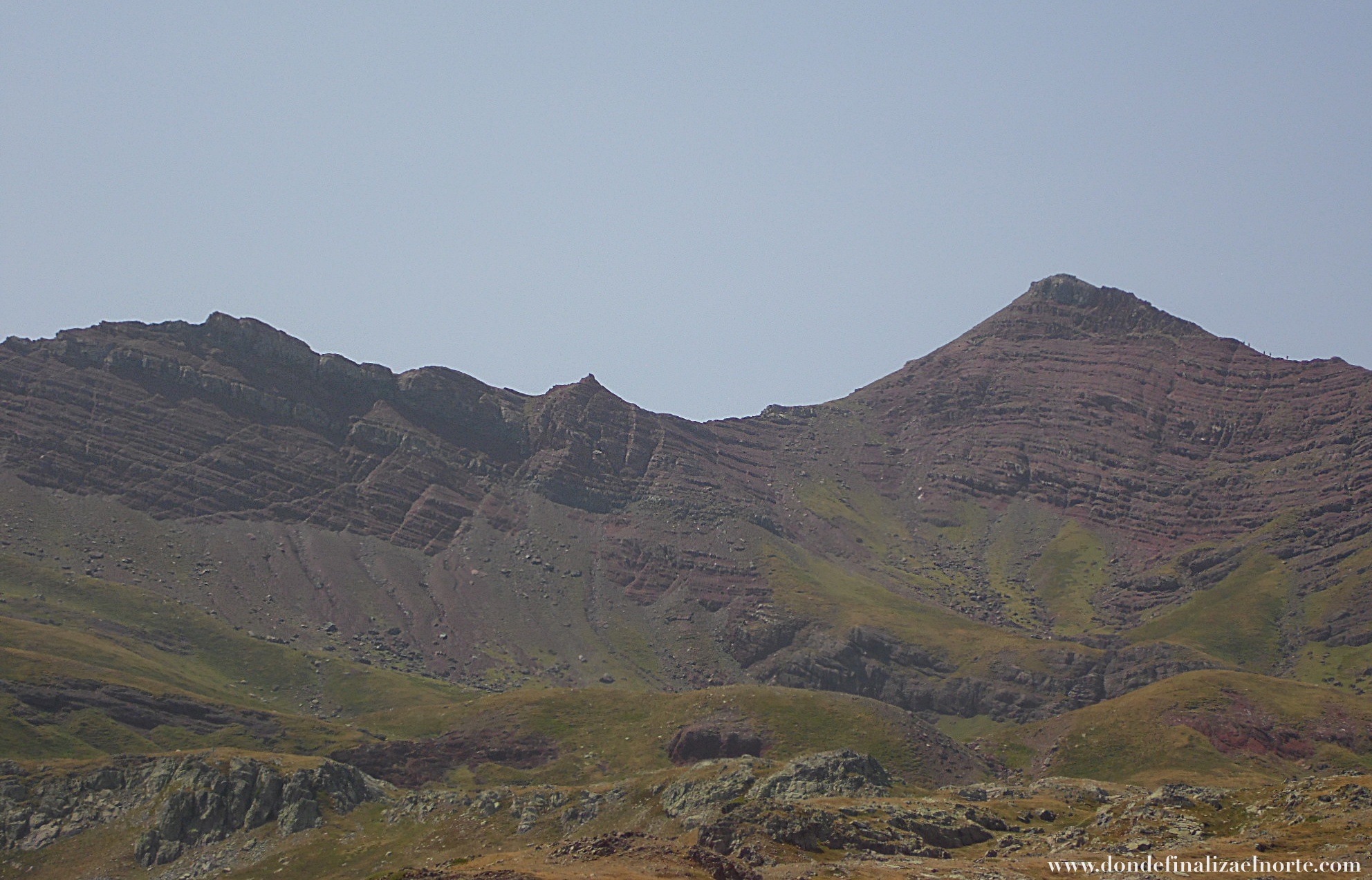 “Vértice del Anayet (2555 m. altitud) a la derecha y color rojizo de la roca”